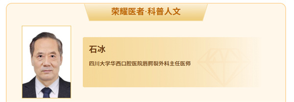 石冰教授是中华儿慈会微笑行动专项基金外科组长、中华口腔医学会口腔颌面外科专委会前任主任委员、中华口腔医学会唇腭裂专业委员会前任主任委员,2003年起至今,坚持不懈地参与各类唇腭裂慈善医疗,参与慈善手术2000余次,救助患者数万人次。所带领的团队是国内迄今为止,参加唇腭裂等疾病医疗慈善活动医护人次最多,救助患者人次最多、影响最大、辐射最广、累计时间最长的团队。