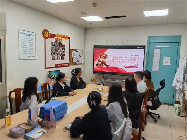 为深入学习贯彻党的二十届四中全会精神,2025年12月4日,医学影像科党支部组织召开专题党课学习会。支部书记任家银以“以医学影像之眼,见中国式现代化之路”为题主讲,科室全体党员及入党积极分子参加学习。