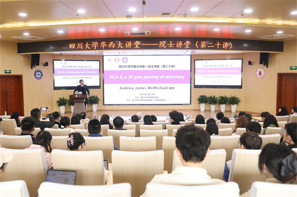2026年3月16日,四川大学“华西大讲堂—院士讲堂(第二十讲)”在我院成功举办。本次院士讲堂特邀世界免疫学领域的杰出科学家,英国皇家学会院士、英国医学科学院院士、牛津大学Andrew James McMichael教授主讲。华西医学中心副主任白鹏和我院副院长袁泉参加此次学术活动。