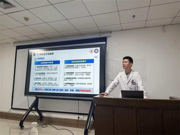 “科研源于临床,服务于临床”——基于这一理念,沙龙设置“临床提需求,影像给方案”双向对接环节。头颈肿瘤病房丁张帆老师代表临床团队,围绕头颈部肿瘤淋巴结转移、识别等临床痛点问题,提出具体的科研需求与合作方向。医学影像科胡洪英、石宇超、李偲羽分别从“科研数据中心和专病数据库的构建与临床应用现状”“口腔颌面肿瘤人工智能分割”“基于磁共振影像的多模态图像融合技术及磁共振口腔专用新序列应用”等方面进行了交流分享。