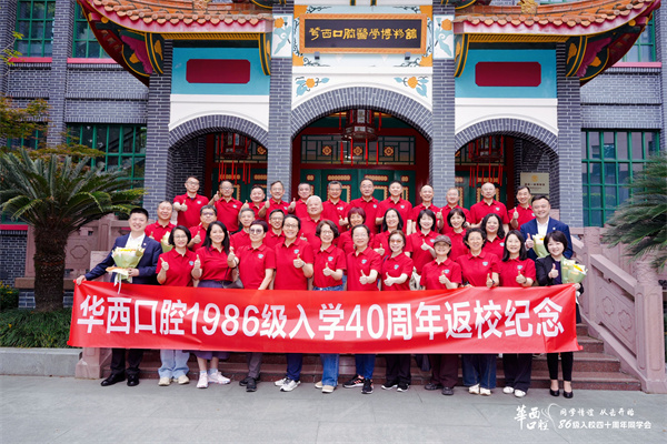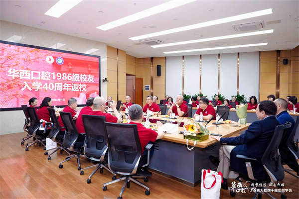 最后,校友们重游华西校园,参观了第四教学楼(牙科楼)、图书馆、钟楼、荷花池等承载历史和文化的地标。老友们在笑谈中聚首重逢,并与学生志愿者亲切交流,延续华西口腔人之间的深厚情谊。