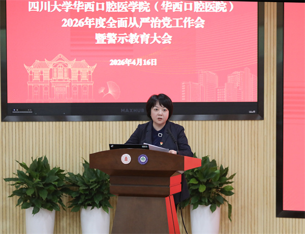 院长韩向龙同志就贯彻落实会议精神提出三点要求。他指出,要拧紧思想“总开关”,以正确政绩观匡正作风纪律,在准确把握管党治党形势和任务中知责;要守好工作“责任田”,把全面从严治党与业务工作同谋划、同部署、同推进,完善一级抓一级、层层抓落实的工作格局,在真抓实干中担责;要练就担当“铁肩膀”,在服务大局中履责,保障“十五五”开好局、起好步,在世界一流口腔医学学科建设中交出优异答卷。