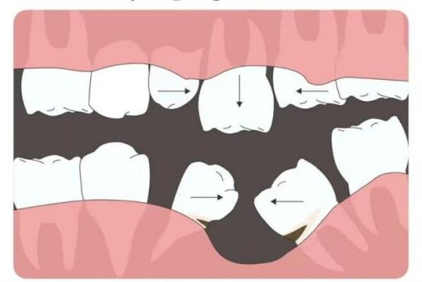 咀嚼功能减退:牙齿缺失会导致切割、研磨食物的功能减退,而长期不修复缺牙,旁边的牙齿可能向缺隙侧倾斜移位,对合牙齿伸长,最终导致咬合关系紊乱。