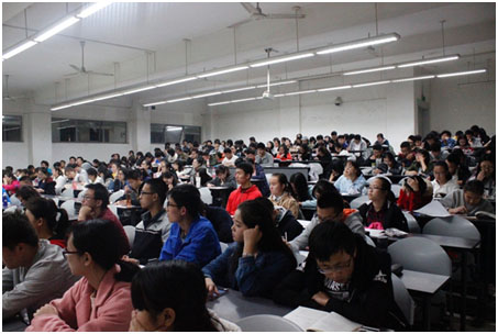 2016年11月4日晚19点整,由我院全体学术型社团主办的“大学生创新创业训练计划宣讲会”在四川大学江安校区第一教学楼B座B207室成功举办。本次宣讲会的主讲人是2016级辅导员李莎老师以及四川大学学工部董薇老师,2016级全体新生参与了此次宣讲会。座无虚席的热情显示着2016级新生对大学生自主创新创业的关注,展现着他们良好的创业精神面貌。