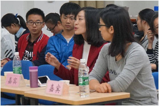 首先,由李敬副教授为大家讲解,她按照读研、出国、工作的顺序具体阐述了学生在每一阶段应如何规划自己的职业生涯,而后在介绍自己的科研经历和成果的同时,也衷心告诫同学们:“一定要主动去寻找机会,抓住机会,一步一步踏实地做好手里的工作。”随后,陆铖同学通过自己的经验阐述了职业生涯规划的意义。接着,徐茄老师通过讲解“职业生涯规划”的真正内涵来提醒大家在大学低年级阶段一定要注重自我探索与开发。最后进入互动环节,同学们积极提出了自己在进行职业生涯规划时所遇到的困惑,在场嘉宾耐心地对每个问题都做出了详细的解答。历时两个小时,本次讲座完美落幕。